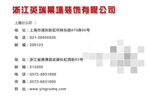 您現(xiàn)在的位置:浙江英瑞幕墻裝飾有限公司 > 聯(lián)系我們